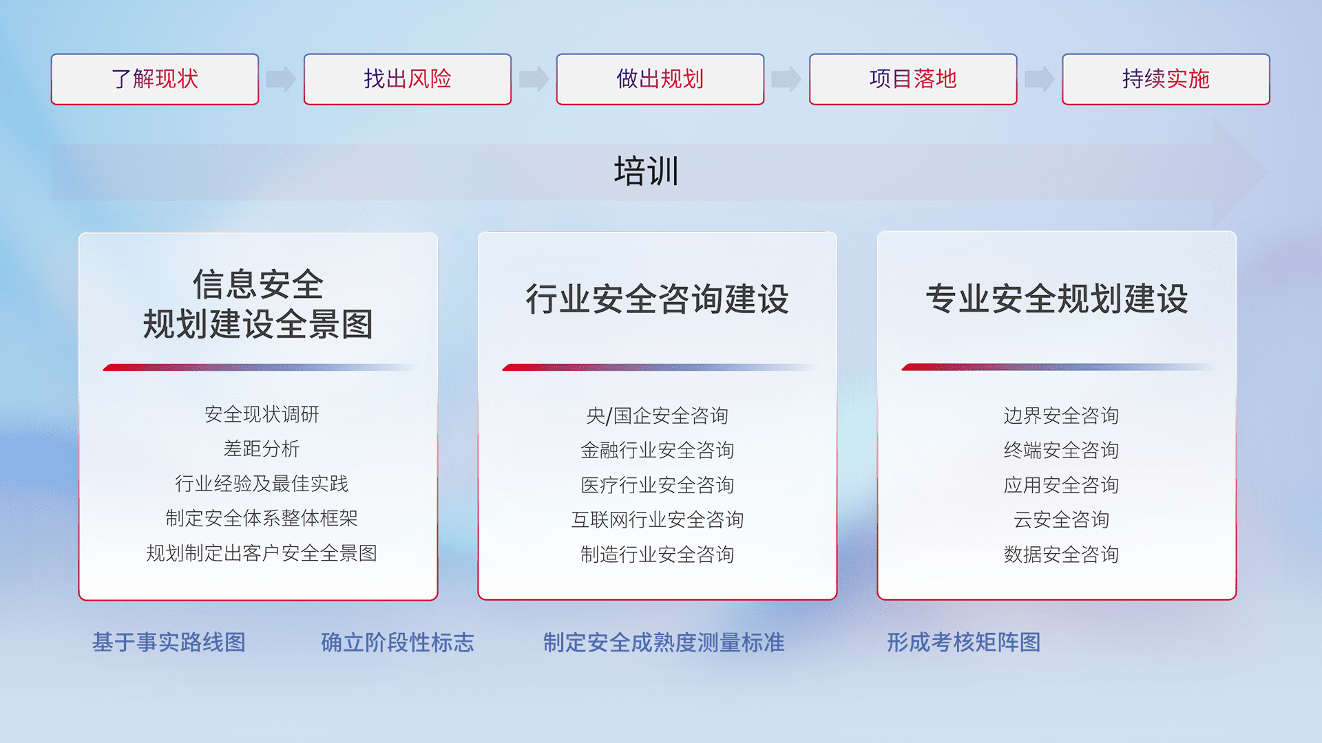 通过专业的法律咨询解读、、、、合规架构体现、、、差异化解决方案、、测试实施支持等服务,,,为客户量身打造等保合规体系。。